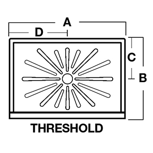 Single threshold shower floor in white features heavy duty molded fiberglass construction with a ribbed underbody for strength and a slip resistant sunburst floor pattern for safety.